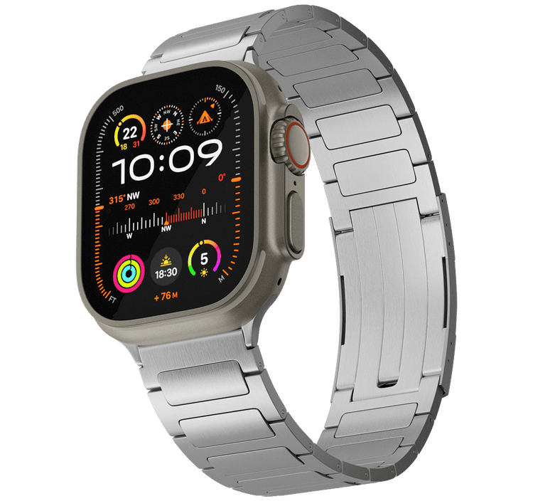 Experience the epitome of luxury with our Apollo titanium Apple Watch band. Titanium, known for its strength and elegance, provides a high-end, sophisticated look that elevates your Apple Watch to a new level of style.